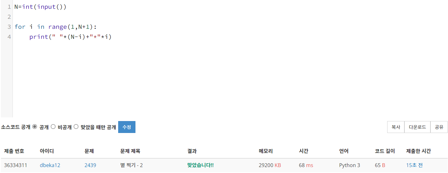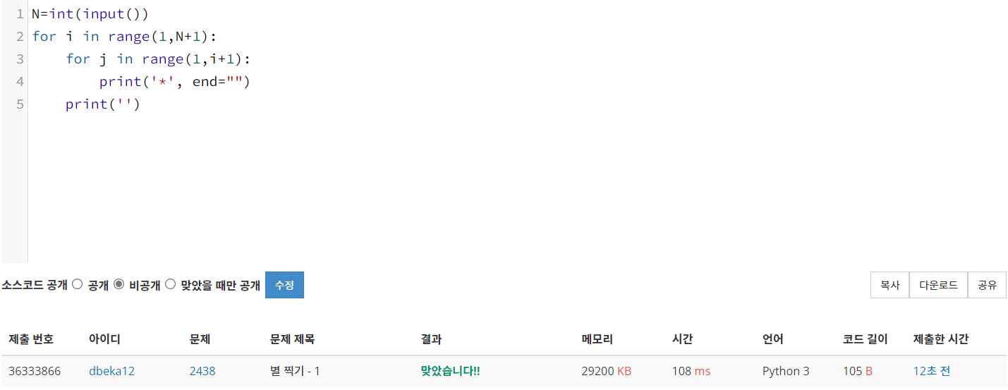 이 문제는 입력받은 숫자의 개수만큼 별을 찍어내는 문제이다.